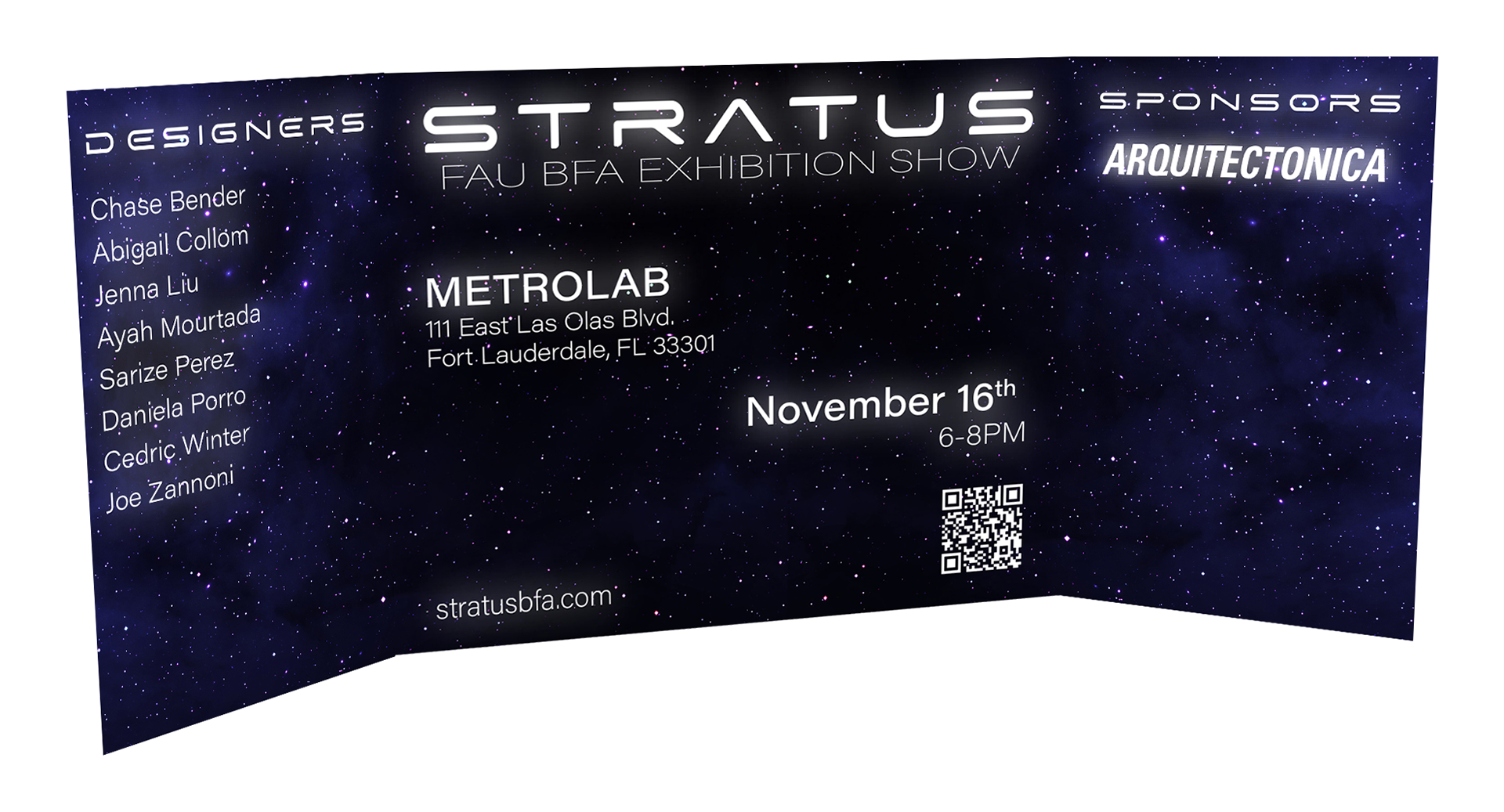 Invitation for BFA show titled “Stratus”.